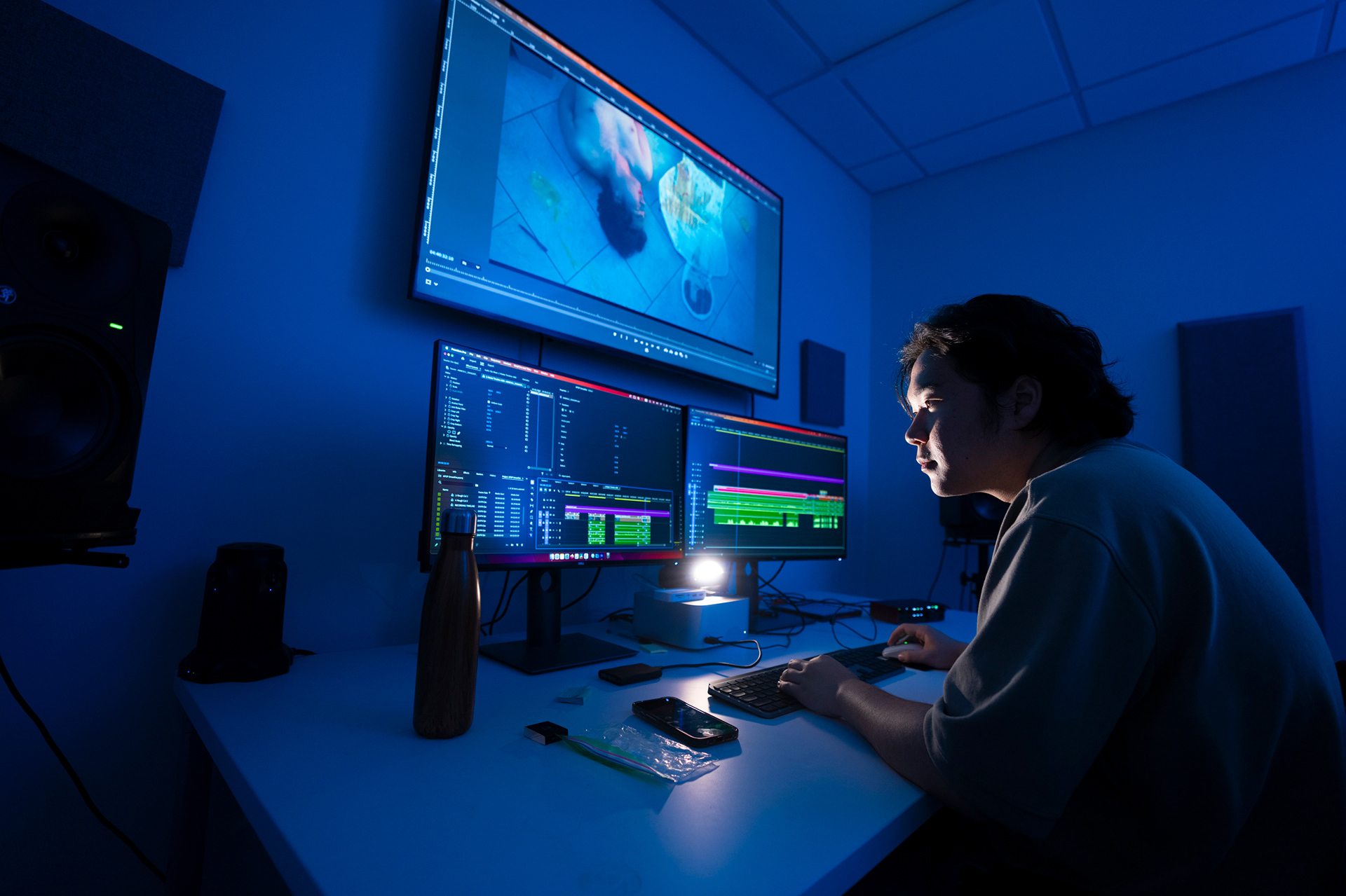 Sam Falls works on his artwork for the VU Art Commission.