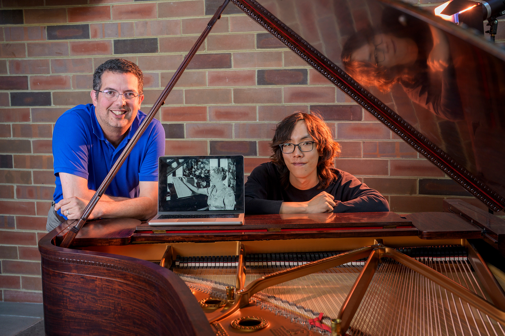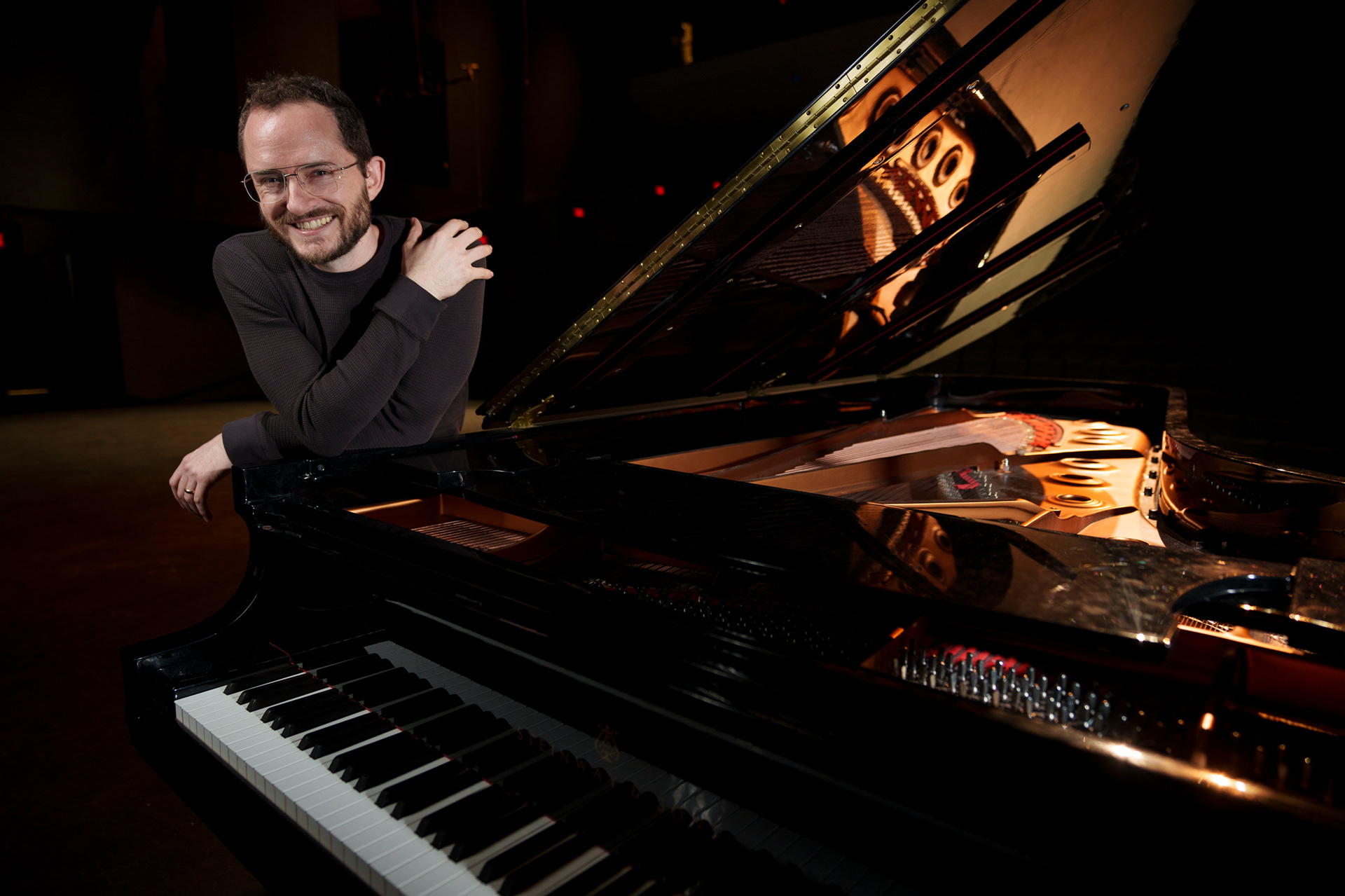 Pascal Le Boeuf, nominated for a Grammy, poses on stage at Blair School of Music.