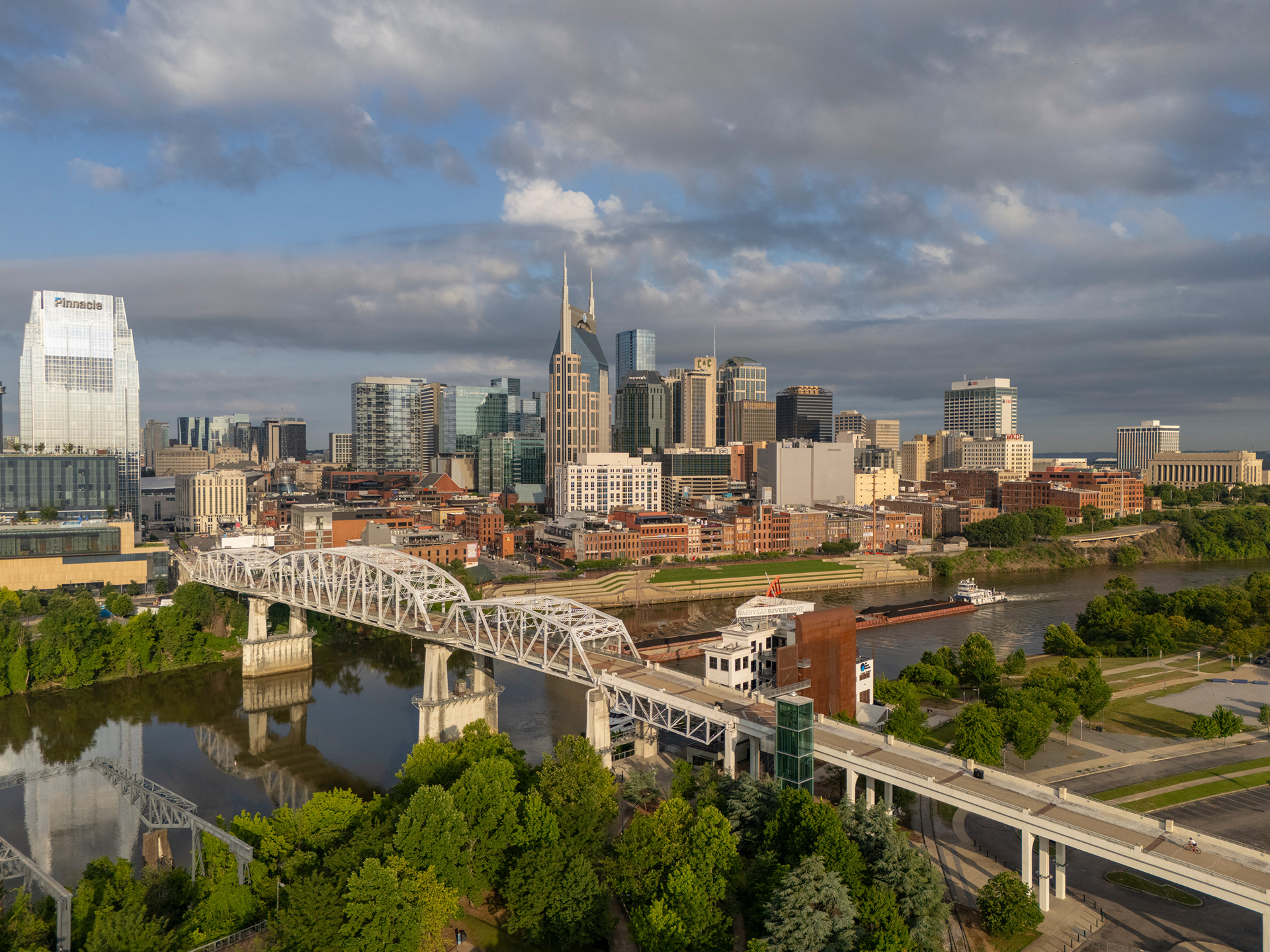 The Nashville Skyline. Our campus about two to two and a half miles from downtown. When our football team beat Alabama in 2024 the students carried the goal post from FirstBank stadium to the river, 2.4 miles down West End/Broadway to the river.