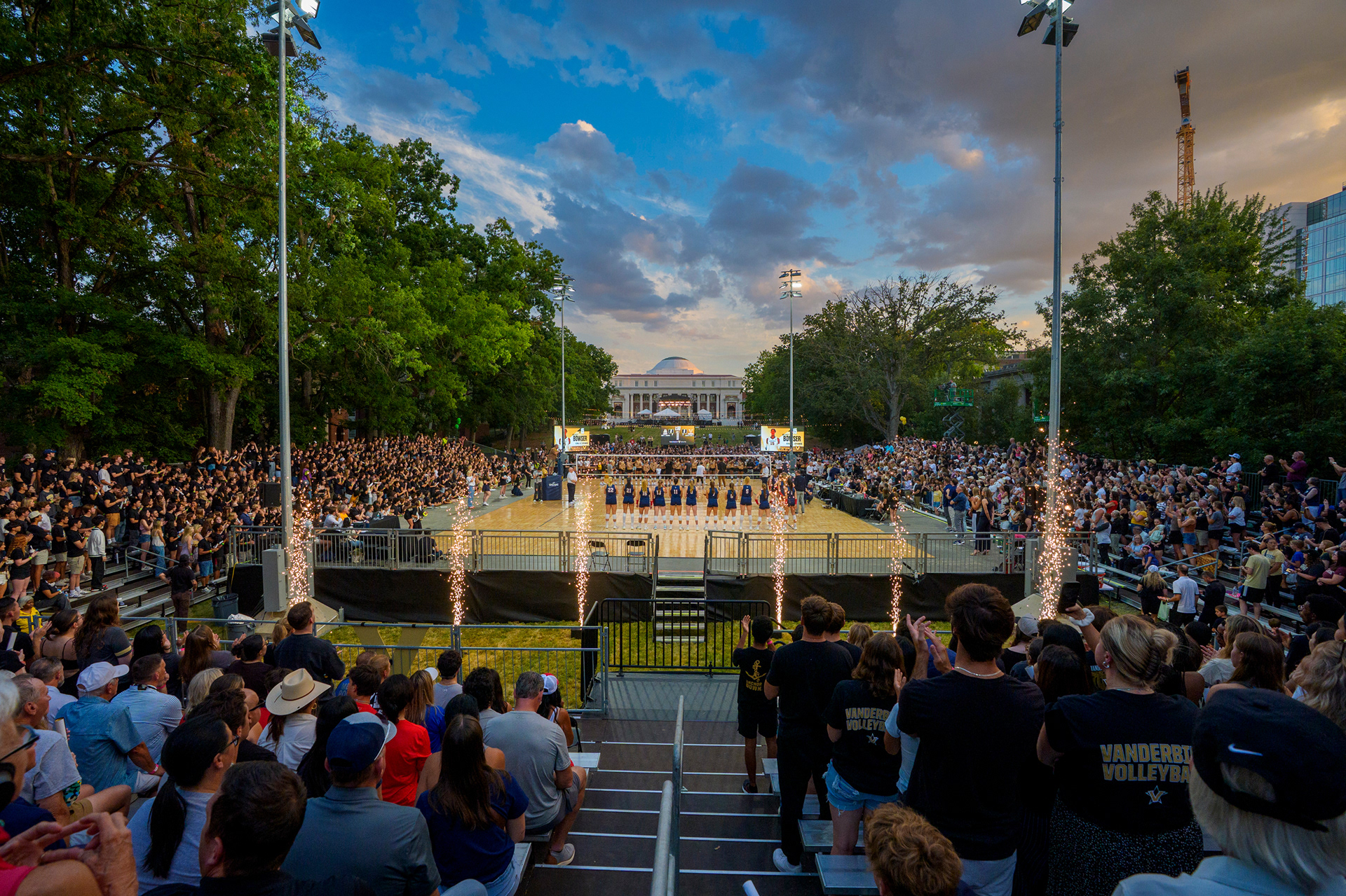 Match One: The first game of the newly restarted Vanderbilt Volleyball team was held on the Peabody Esplanade.